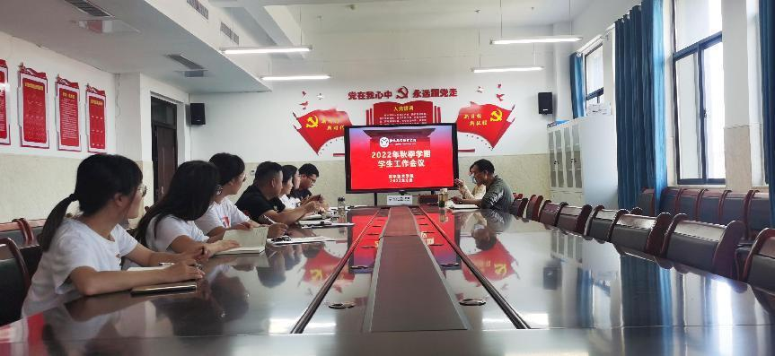 会上,李笑雯首先介绍了新辅导员,部署了2022级新生管理工作。随后,将专兼职辅导员工作职责、秋季学期工作部署及工作重点等进行详细讲解。