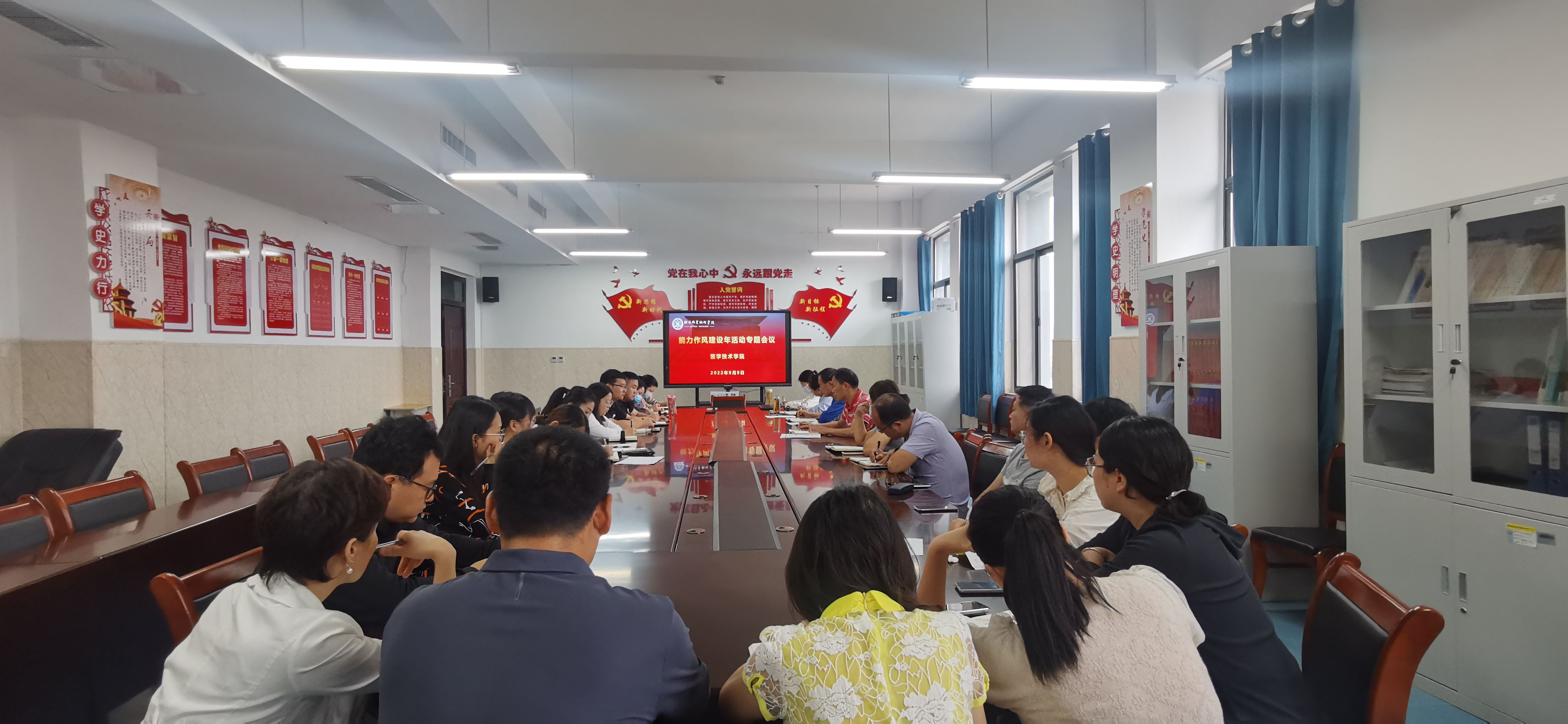 9月9日下午,医学技术学院在2号实训楼412会议室召开能力作风建设年专题会议,医学技术学院全体教师参加会议,医学技术学院党总支书记李灵轲主持会议。