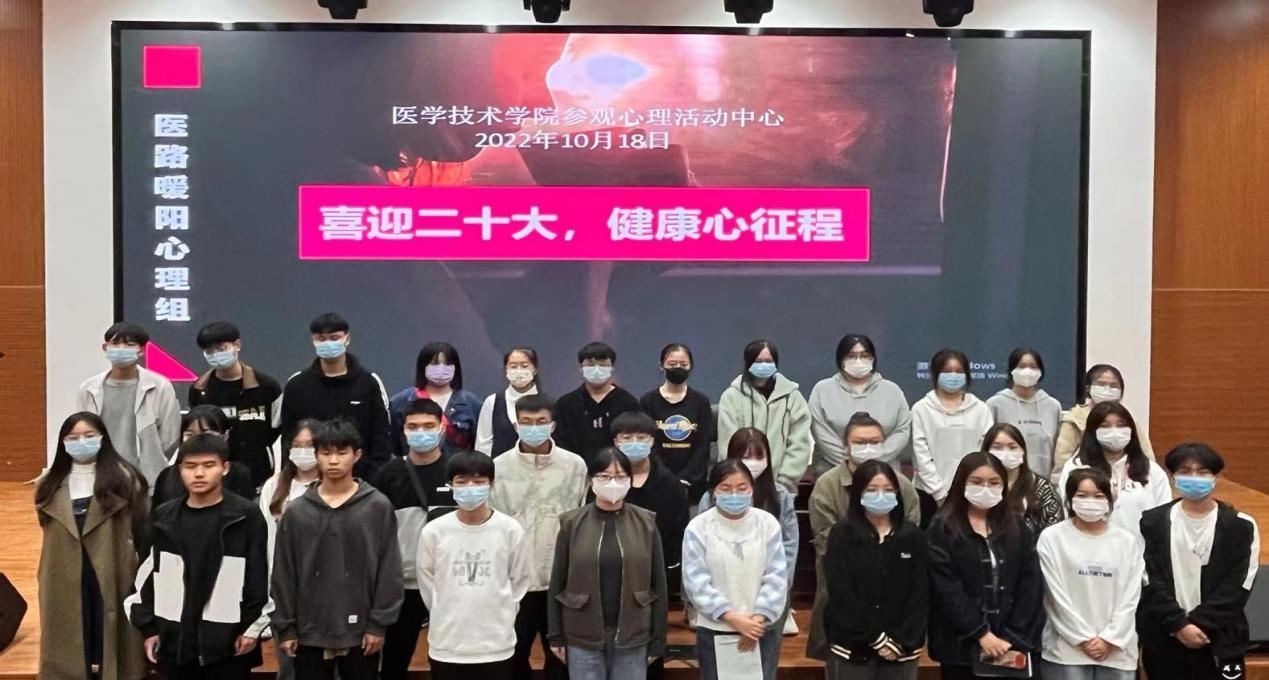 为进一步加强大学生的心理健康教育,促进学生全方面健康发展。2022年10月18日晚,医学技术学院医路暖阳服务队心理组带领医学技术学院2022级各班心理委员和组员参观了大学生心理健康教育发展中心。由心理健康教育发展中心的值班学生带领大家参观,并体验心理健康教育发展中心的各项设施。