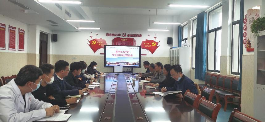 为深入落实学校学生成长导师制度,提高学院学生教育管理工作水平,10月14日下午,医学技术学院学生成长导师见面会在2号实训楼412会议室举行,教务处处长刘晨艳、基建处副处长郭有、教务处副处长张习伟出席,医学技术学院班子成员、全体思想政治辅导员及学生代表参加。会议由医学技术学院党总支书记、院长李灵轲主持。