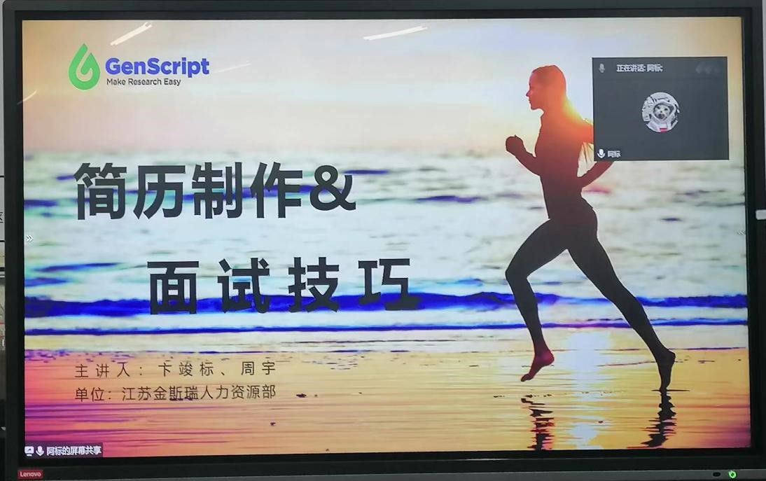 11月10日下午,医学技术学院订单班在二号实训楼430教室进行第五次授课,镇江金斯瑞生物科技有限公司校园招聘经理卞竣标和周宇主讲,检验专业订单班班主任张卫凯主持,此次会议采用线上课堂的形式进行。