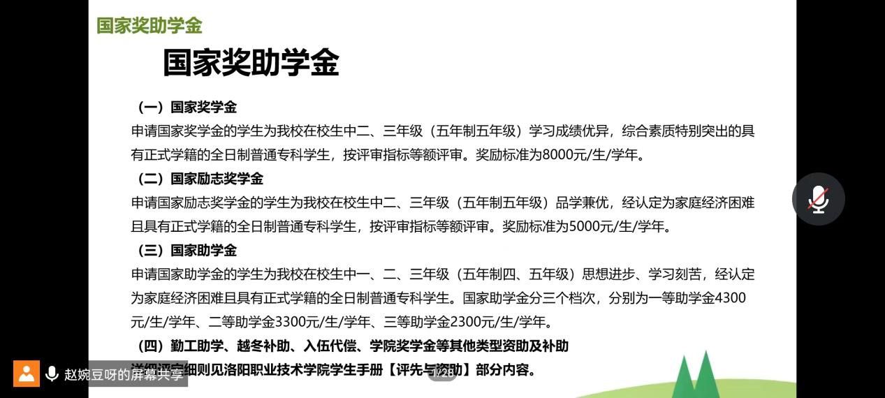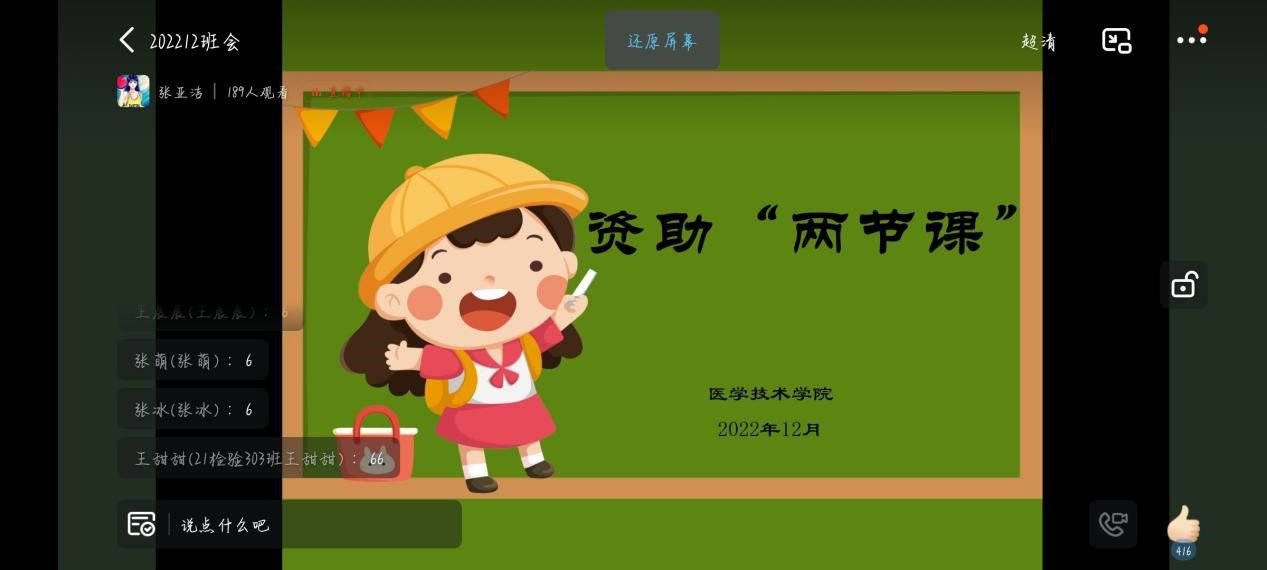 为加强学生资助政策宣传力度,帮助学生更好地了解各项资助政策,12月上旬,医学技术学院以线上班会的形式面向全体2021级和2022级学生开展了资助政策“两节课”宣讲活动。