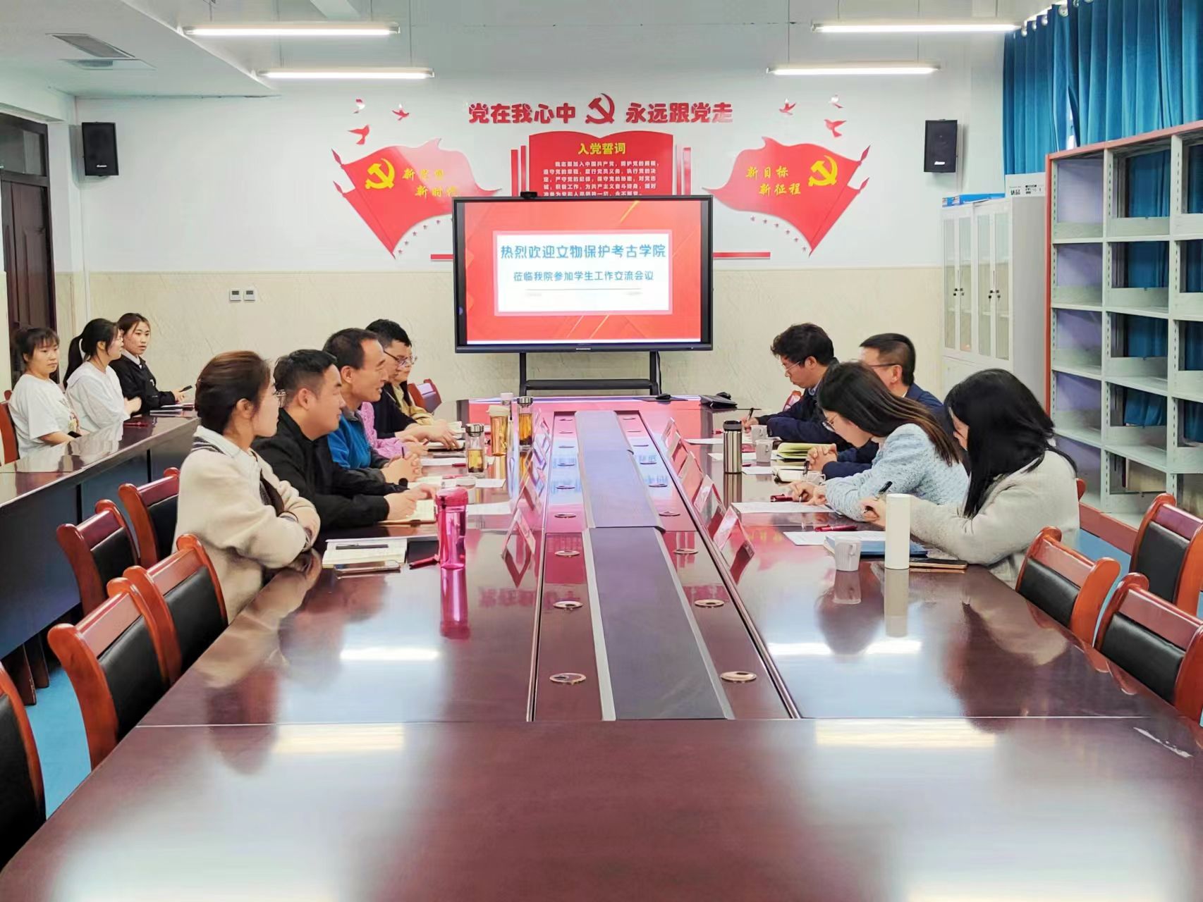 3月31日下午,文物保护考古学院学工团队到医学技术学院进行工作交流,会议在2号实训楼412会议室进行,文物保护考古学院党总支副书记赵博和医学技术学院党总支副书记房长显分别带领学院学工团队参会,医学技术学院学工办主任李笑雯主持会议。