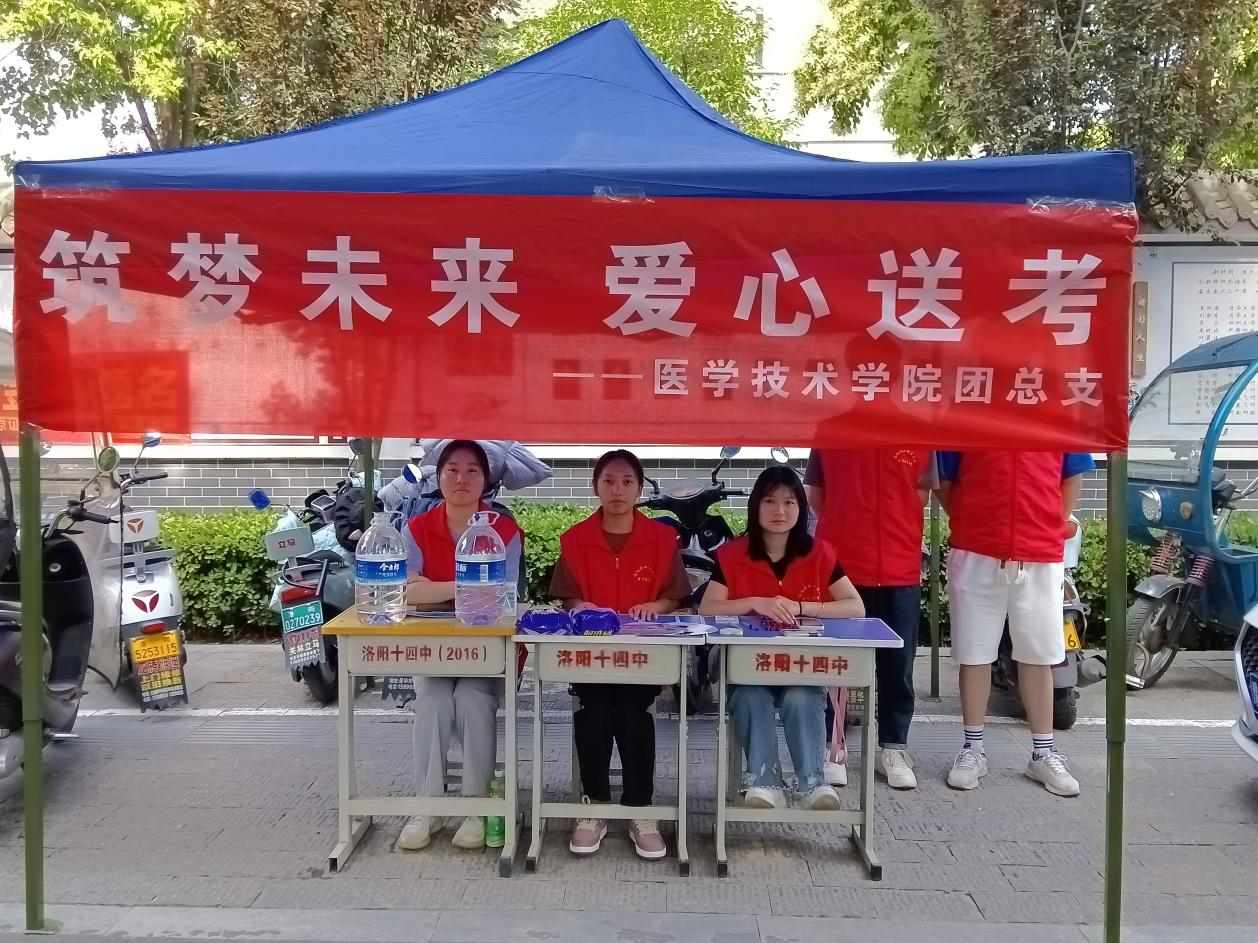 6月7日、8日,一年一度的高考拉开序幕,在这个承载着希望和梦想的美好时节,医学技术学院团总支在洛阳市第十四高级中学高考考点门口开展“筑梦未来,爱心送考”的主题志愿服务活动。