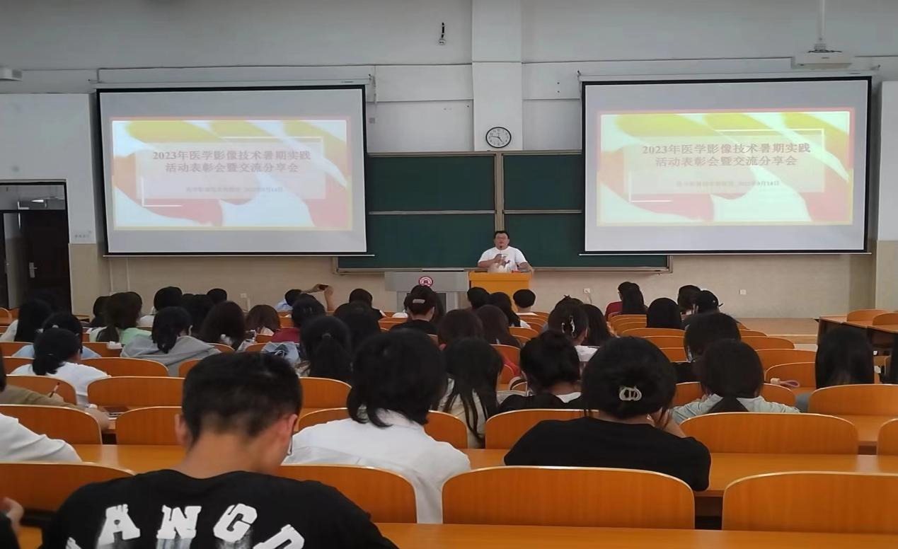 9月14日,医学技术学院医学影像技术教研室在5号教学楼410教室举行暑期实践活动表彰会暨交流分享会。本次交流分享会共有175名专业学生参加,影像教研室主任李一巍为本次活动致辞并阐明此次活动的重要意义。经过医学技术学院严谨有序的组织,各位师生及实习单位的共同努力,医学影像技术专业暑期社会实践工作取得了阶段性的成果。为表扬先进,树立典范,鼓舞斗志,坚定专业信念,获得“企业实习优秀实习生”及“专业实践优秀实习生”荣誉的同学们,由党总支副书记侯浩朋为他们颁发了荣誉证书和奖品。