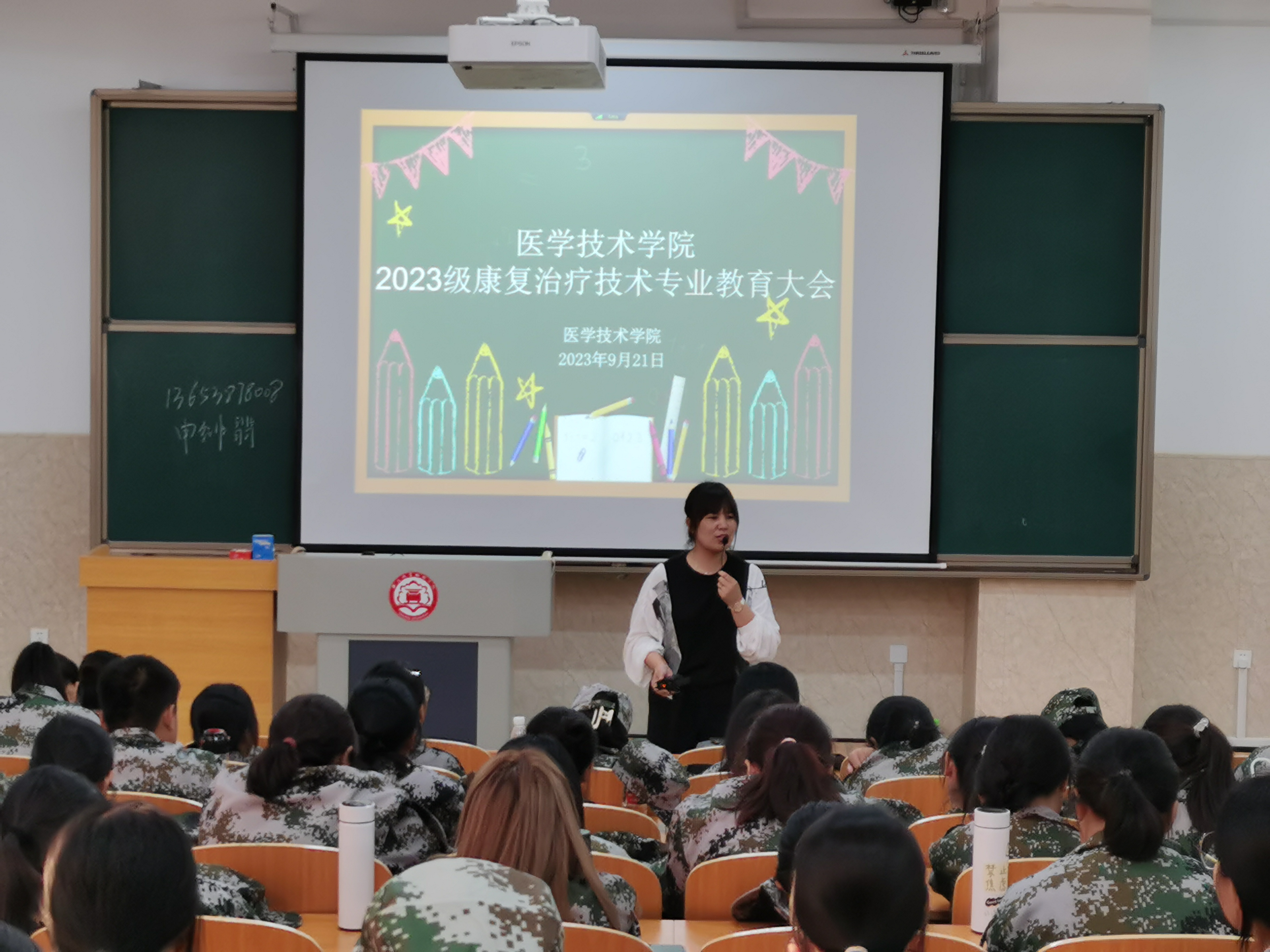 章志梁从康复治疗技术专业的发展进行详细讲述,回答了康复治疗技术是什么、发展历史如何及未来的学习同学们如何做。齐俊丽讲述了如何备考康复治疗师证,宋丁对康复治疗技术专业人培方案进行解读。最后,申绯翡做总结讲话,勉励同学们在新的起点奋发向上,努力学习,成为德才兼备的高质量技能型人才!此次专业教育大会是2023级学生入学后开启的崭新一页,相信通过会议,新生们于专业知识有了更明确、更清晰的认知与理解,对于今后的大学生活有了更加清晰的规划,希望各位康复治疗技术专业新生们能够用实际行动努力拼搏,不负青春,不负韶华!