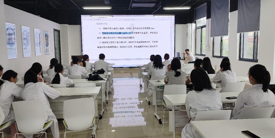 上午,张栋梁在校医院二楼209教室对眼视光专业同学进行专业教育——青少年眼健康视力筛查系统的使用,为进行洛阳中小学视力筛查活动做准备。