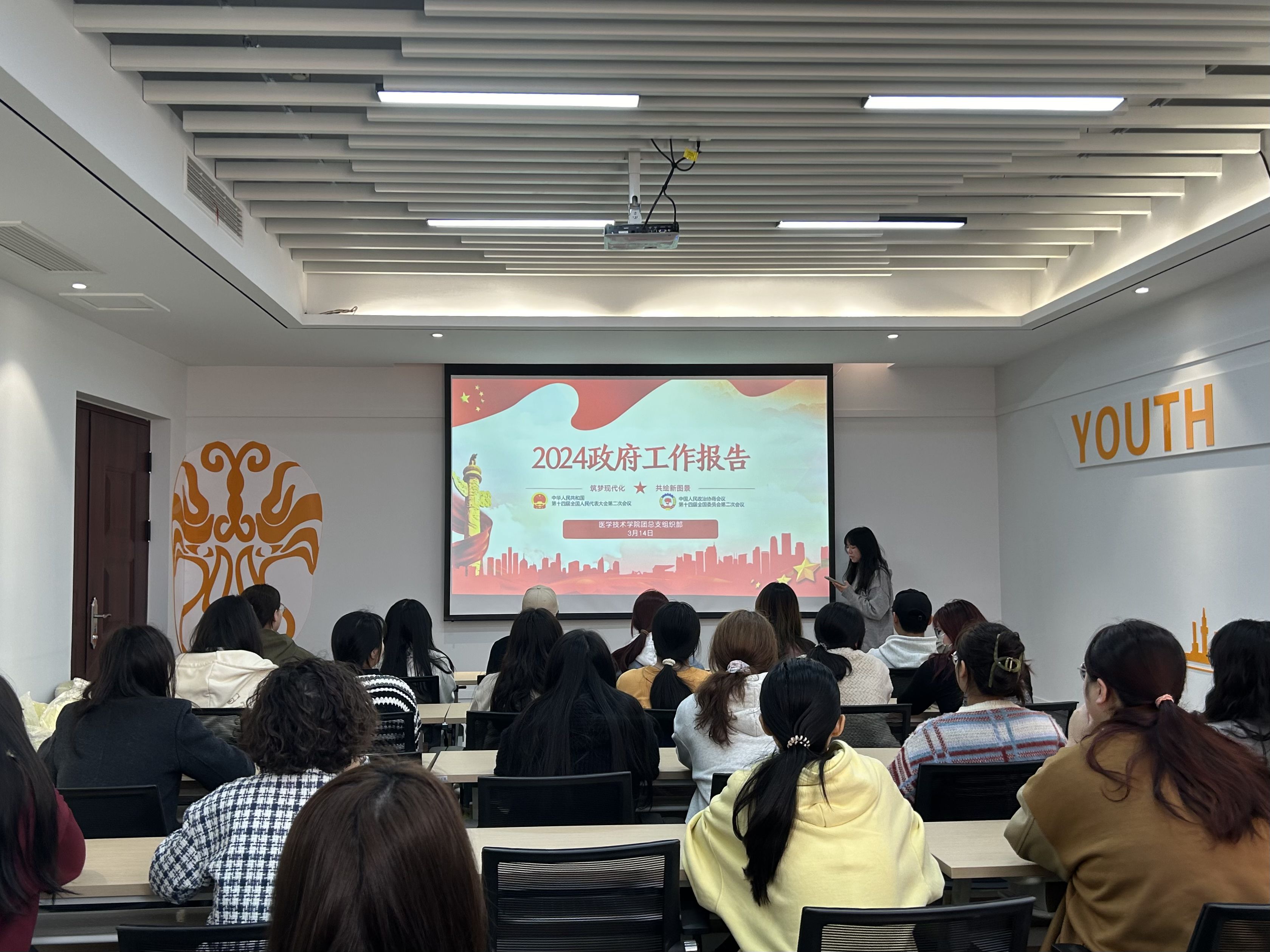 为引导大学生深入学习政府工作报告,增强国家意识,促进学生综合素质的提升,培养大学生的国家意识和社会责任感,提高大学生的时政分析能力和批判性思维能力,3月14日,医学技术学院团总支在14号楼2楼青年之家组织开展了学习2024年政府工作报告的第二课堂。