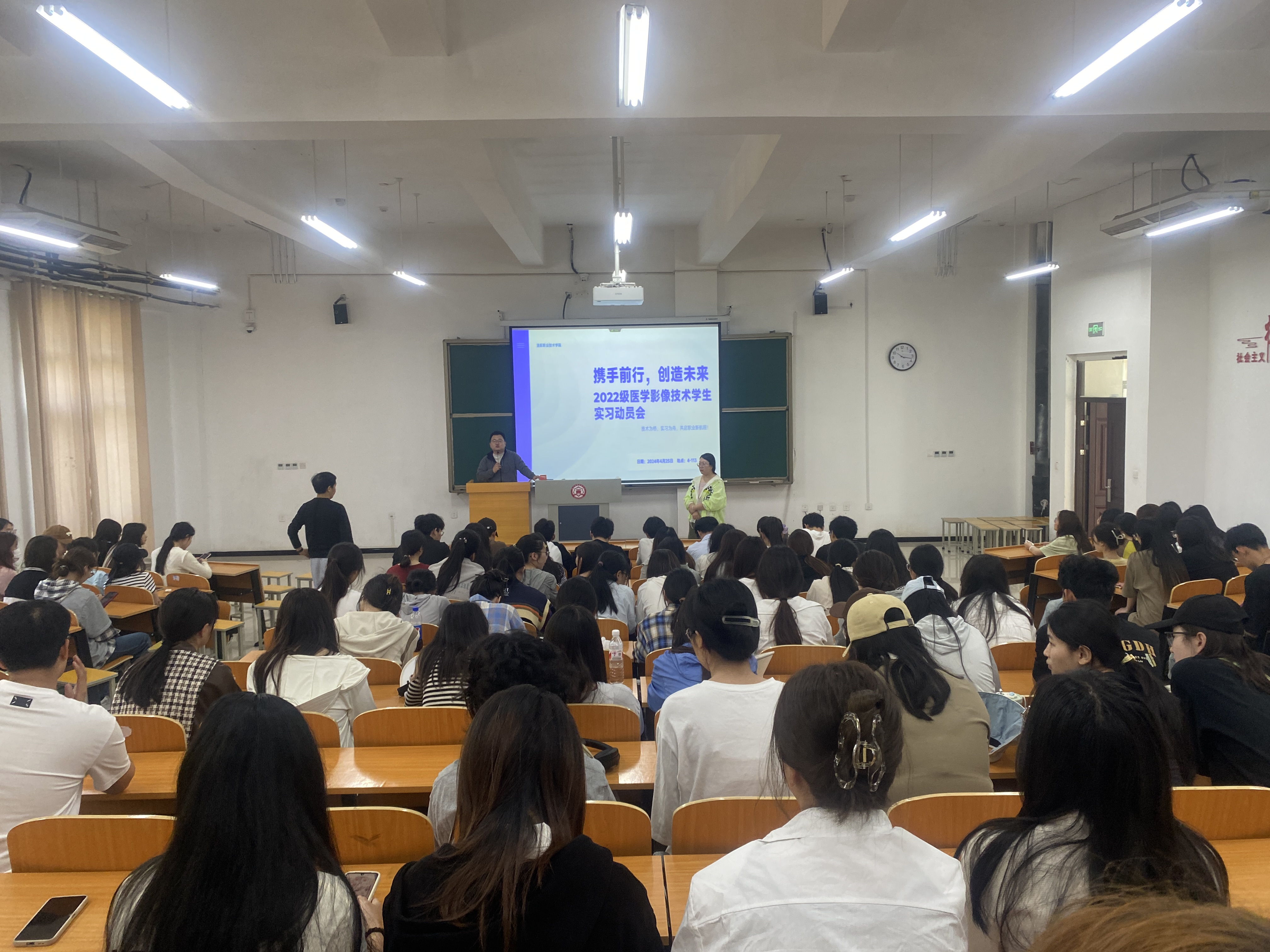为扎实做好实习工作,进一步促进学生对所学知识和技能进行实践运用、总结和深化,引导学生明确认识实习的目的和意义。4月25日上午,医学影像技术专业教研室在4-113教室召开了影像专业的实习动员大会。医学技术学院院长李灵轲、影像教研室主任李一巍、影像教研室老师宋莹和尤宏章参加此次会议,会议由李一巍主持。