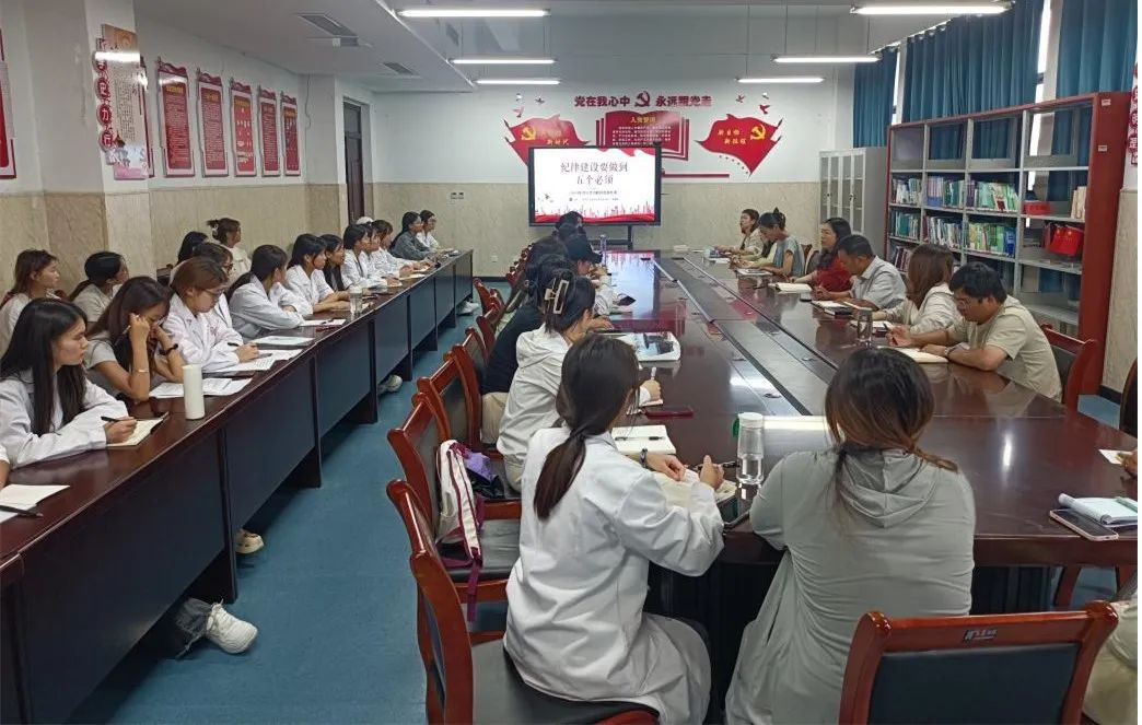 为迎接中国共产党成立103周年,赓续红色血脉,推进党纪学习教育走深走实,6月26日,医学技术学院学生党支部在8号楼412会议室开展支部书记讲纪律党课活动,学生党支部全体党员和23级入党积极分子参加活动。