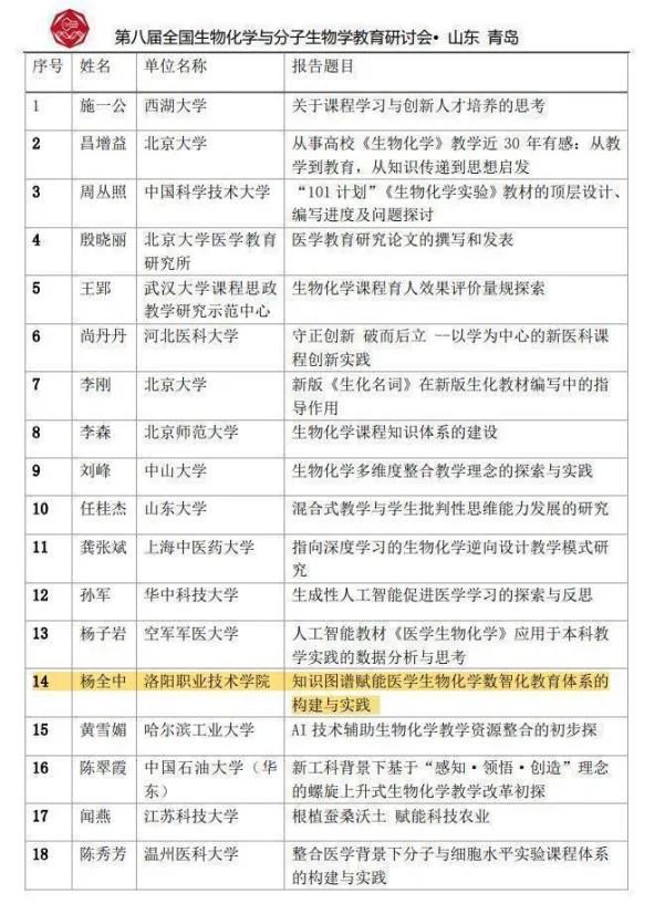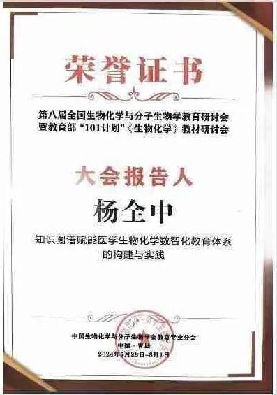 此次杨全中副教授在全国性教学研讨会上的精彩表现,充分展示了我校在生物化学与分子生物学教学领域的实力与创新精神,也为职业院校在该领域的发展树立了榜样。相信在杨全中副教授等优秀教师的引领下,我院在相关教学领域将不断取得新的突破,知识图谱助力下的医学生物化学数智化教育体系也将更加成熟完善。