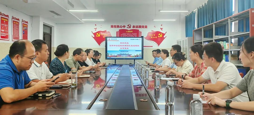 9月12日,洛阳伊洛医院科研团队代表教学办主任朱双灵、科研办主任王利哲、病理科主任魏志豪等一行莅临洛阳职业技术学院医学技术学院进行合作交流洽谈。此次会议在8号楼412会议室举行,医学技术学院院长李灵轲、党总支书记尚艳芳、基础医学院院长赵印震及多名教师代表参加了此次会议。