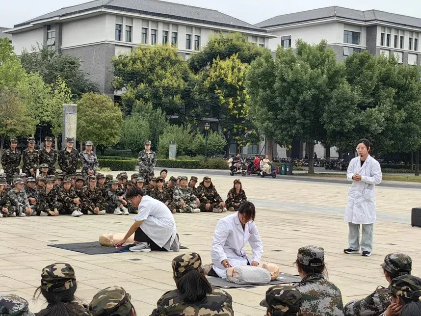 为加强学校安全教育,提高学生应对突发事件和意外伤害的应变处置能力,培养学生乐于施救、敢于施救、善于施救的意识和能力,医学技术学院医影同行社团在9月14日参加洛阳职业技术学院和洛阳师范学院联合开展的学生军训“卫生与救护”课程,对学生进行急救培训。