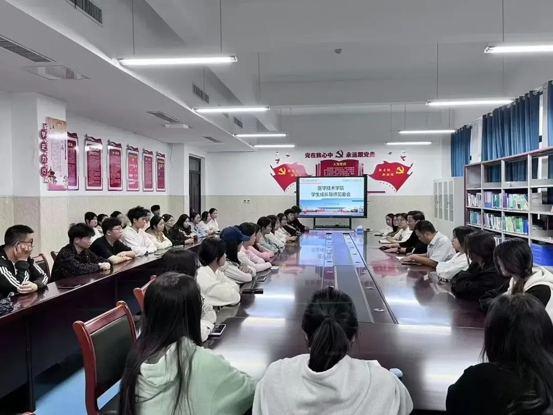 10月16日,校财务与资产管理部部长、24级康复治疗技术302班成长导师王春华到医学技术学院召开座谈会,学院党总支副书记侯浩朋、团总支书记张亚洁参加。