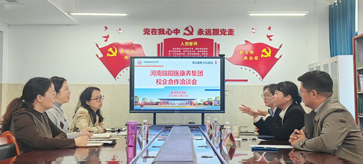 为进一步深化校企合作,拓宽学生就业渠道,构建校企协同育人共同体,医学技术学院积极探索人才培养新模式,为学生搭建多元、优质的就业桥梁。10月24日,河南瑞阳医康养集团人事总监韩宗艳、智慧康养部主任吴纪明、人事专员裴佳佳一行莅临学校,就康复治疗技术专业人才培养、校企合作进行深入交流,医学技术学院尚艳芳书记、李灵轲院长、康复教研室老师及200余名康复治疗专业学生参加了会议。