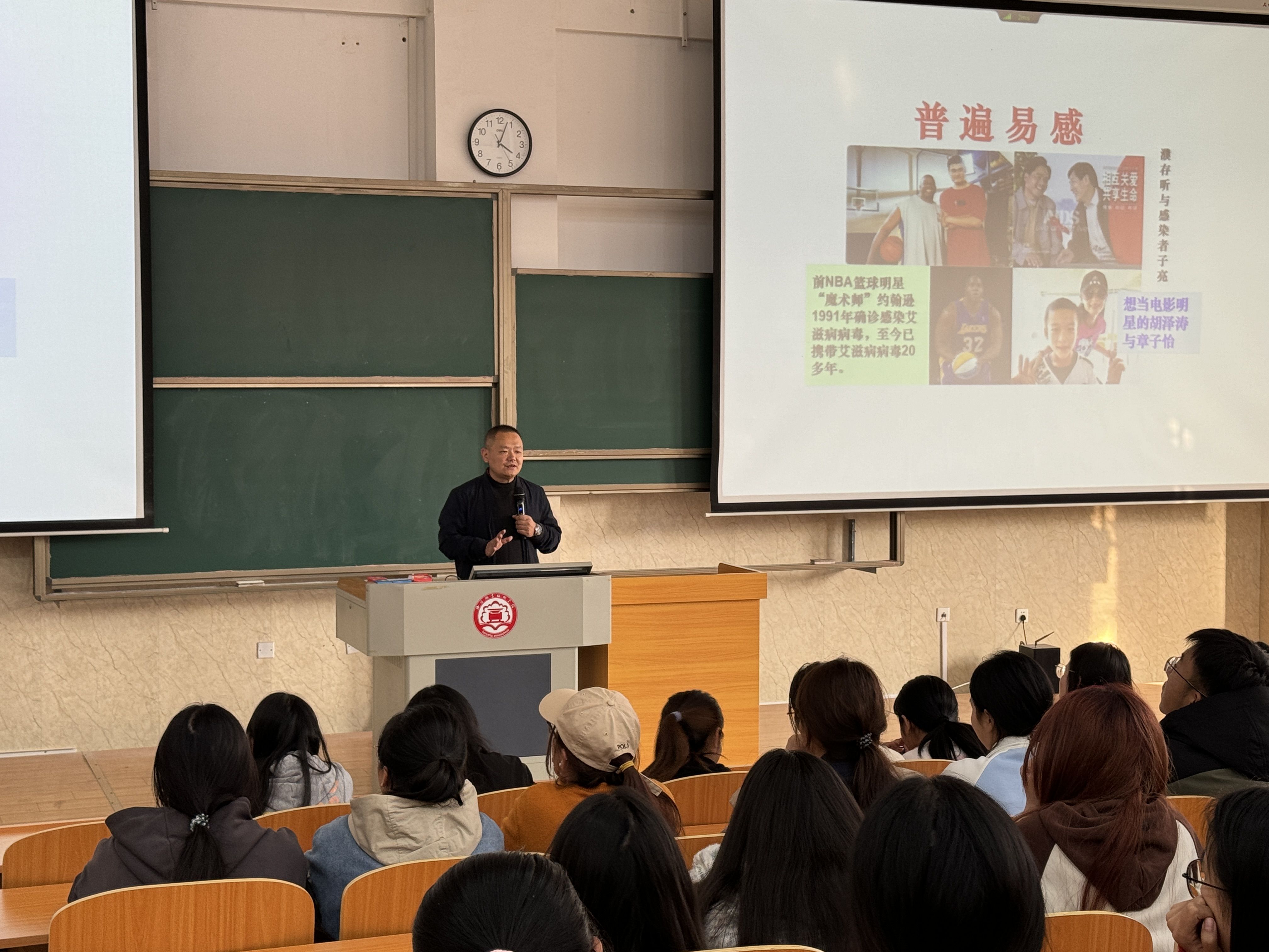 讲座伊始,闫华详细介绍了校医院的地理位置、医院概况、医院科室介绍、值班时间以及特色专科等,让同学们对于校医院有一个基本的了解。随后,王作伟通过科普艾滋病的概念、症状、传播途径,预防措施等,让同学们了解到艾滋病的危害、性病及艾滋病的现状、传播途径、感染病毒后的症状、病毒防治的方法以及如何正确面对艾滋病人等相关知识。最后,赵俊霞围绕肺结核,通过详细阐述结核病的典型症状,如咳嗽、咳痰、低热、乏力以及一些不常为人所注意的特殊表现,为学生们提供了精准识别结核病的有力依据。