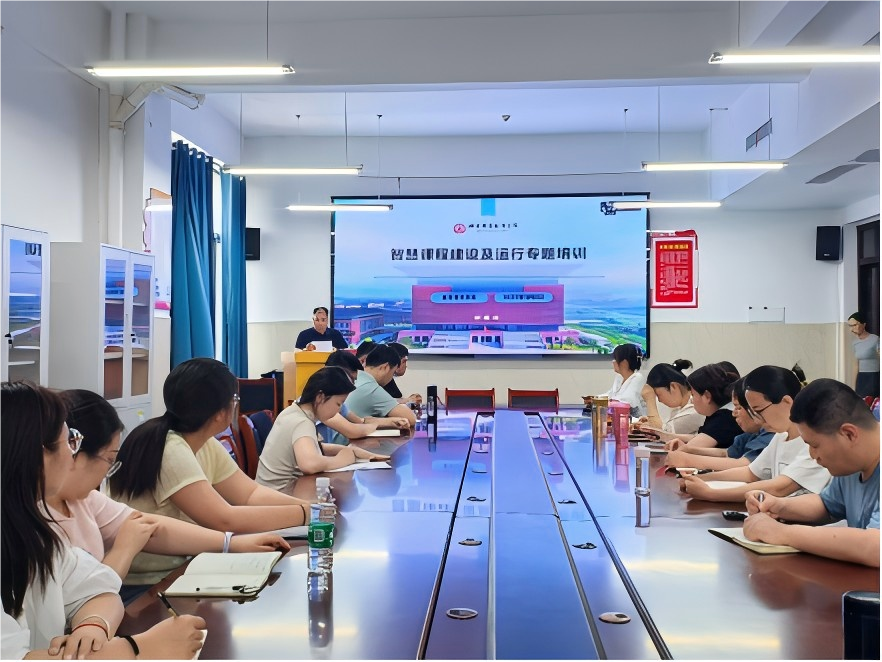5月8日,医学技术学院在8号楼412会议室开展线上线下智慧课程建设及运行专题培训。超星集团华中区产品经理武傑斌老师应邀做专题报告,与学院领导班子和全体教职工共同探索教育数字化转型下的教学新路径。
