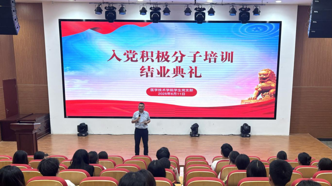 6月11日,医学技术学院在大学生活动中心二楼心理剧场举办入党积极分子培训结业典礼。学院党总支书记尚艳芳、副书记侯浩朋,学生党支部书记董飘飘,辅导员赵婉迪、马聪聪、庄永飞及24级入党积极分子参加。
