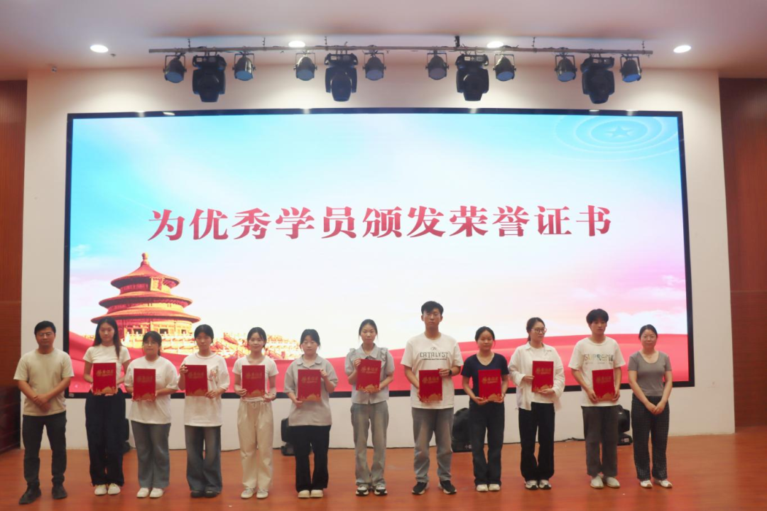 董飘飘宣读了本次培训优秀学员名单,并向获此殊荣的入党积极分子致以热烈祝贺。赵婉迪和庄永飞为优秀学员颁发荣誉证书,勉励全体学员以榜样为标杆,在实际行动中践行入党初心。侯浩朋就本次培训工作作总结讲话,他殷切寄语三点期望:以知促行、学以致用;初心如磐、修于日常;昂扬向上、投身时代征程。他期许大家以党员标准严格要求自己,在成长道路上砥砺前行,早日加入党组织,成为践行初心使命的奋进者。