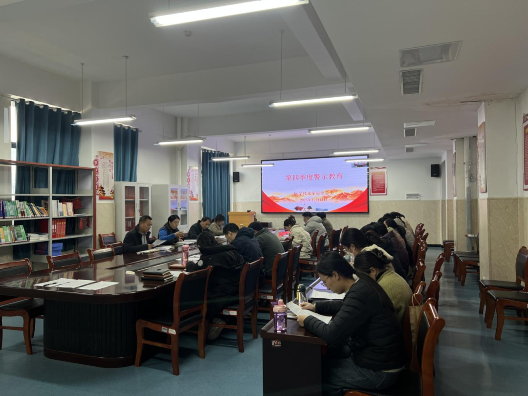 为筑牢思想防线,涵养清廉风气,医学技术学院于12月11日组织全体教职工召开第四季度警示教育会议,会议由党总支书记尚艳芳主持。