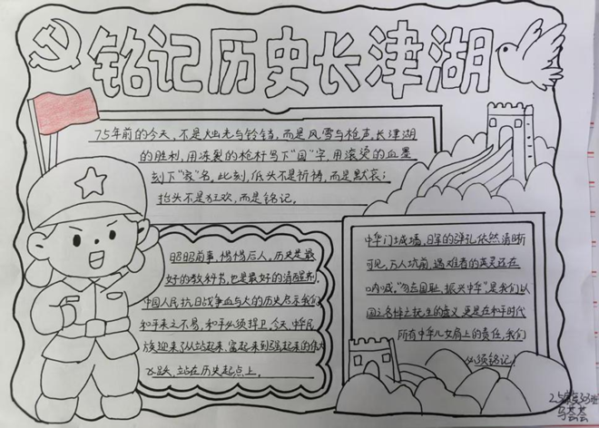 在红色手抄报创作环节,25康复303班马荟荟同学的作品脱颖而出,荣获一等奖。该作品设计精美、内容丰富,通过图文并茂的形式,生动展现了长津湖战役的历史意义和志愿军战士的英雄气概。