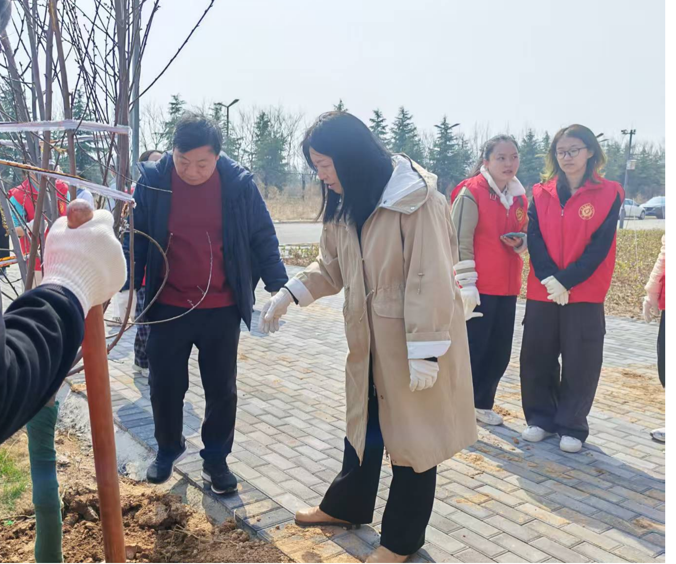 3月12日,校领导于幸福、学院教职工党员、学生入党积极分子及师生代表近百人在新校区二期工地开展“植绿护绿践初心,匠心育人担使命”主题党日活动,以青春与汗水为校园添绿增彩。